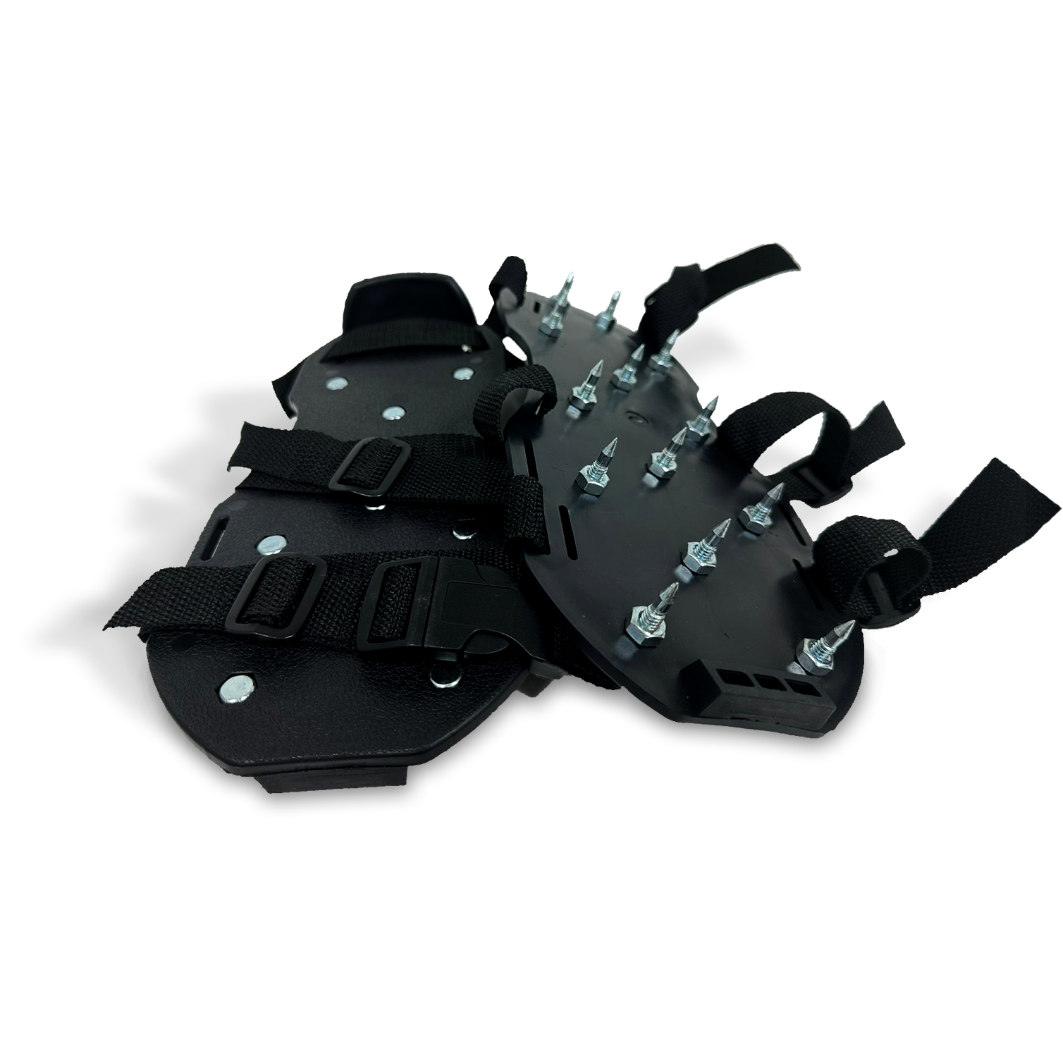 Par de zapatos con púas de metal duradero para una distribución uniforme del peso.